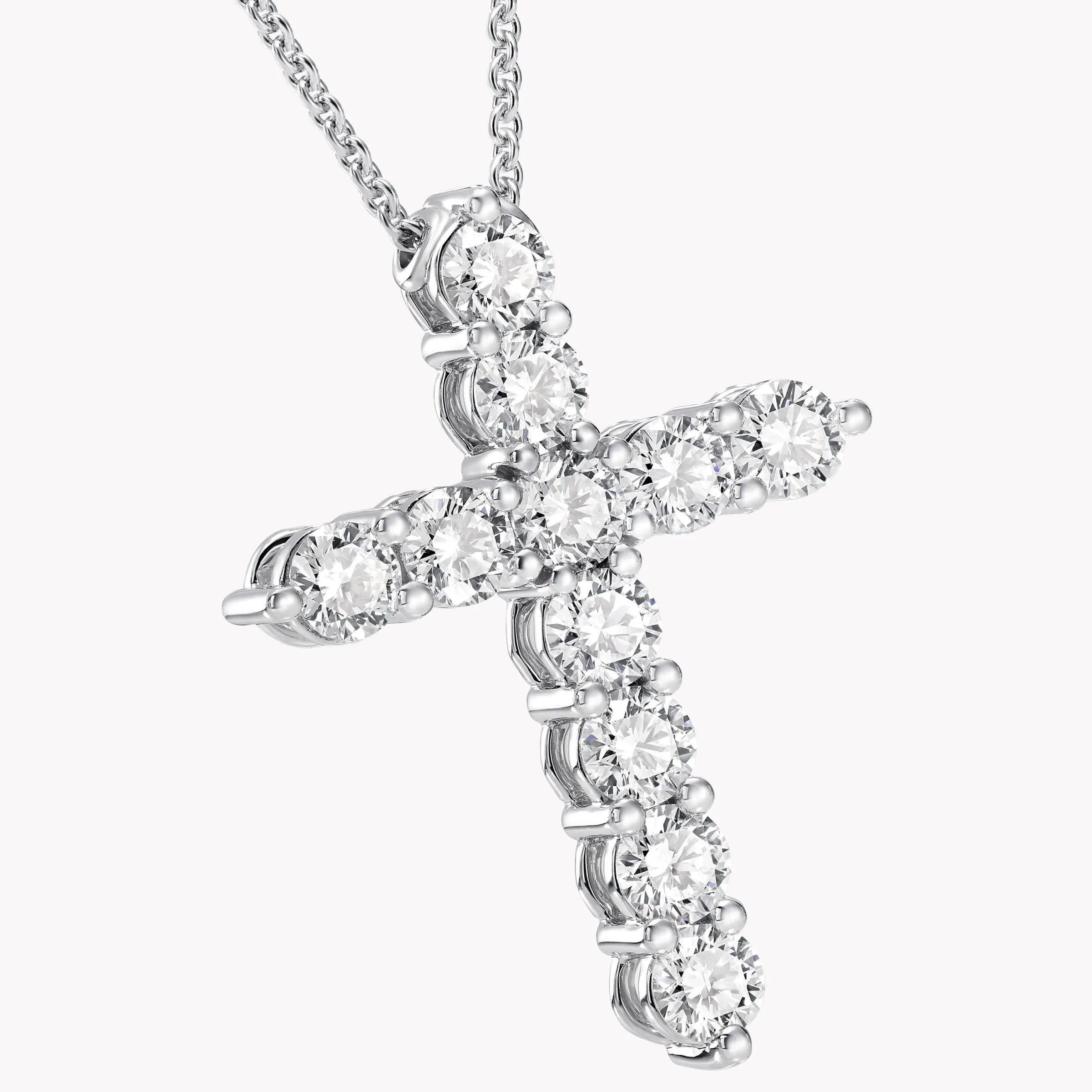 A precious interpretation of a classic motif, our medium cross pendant in white gold is available in a variety of different carat weights, seen here with an approximate weight of 1.75 carats.