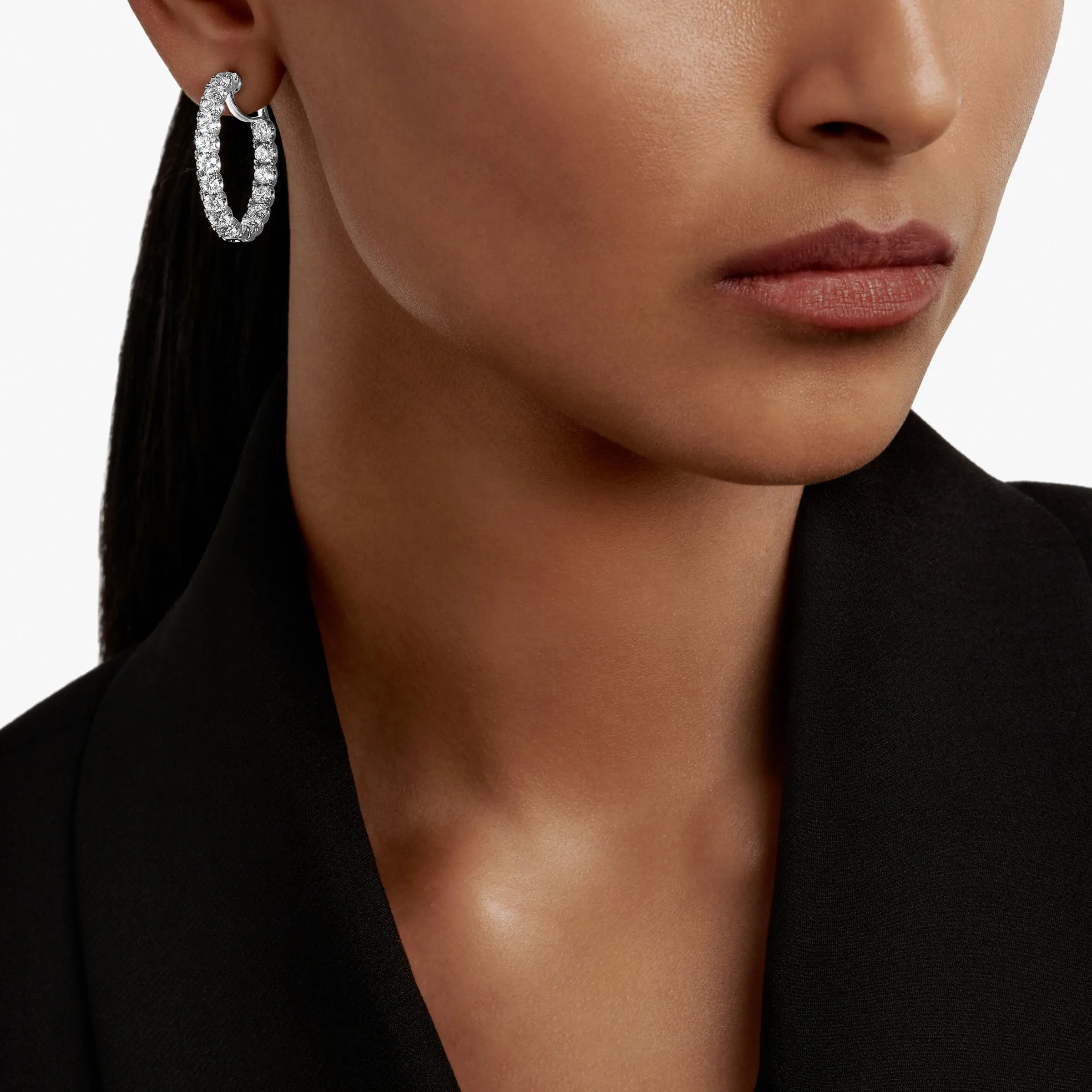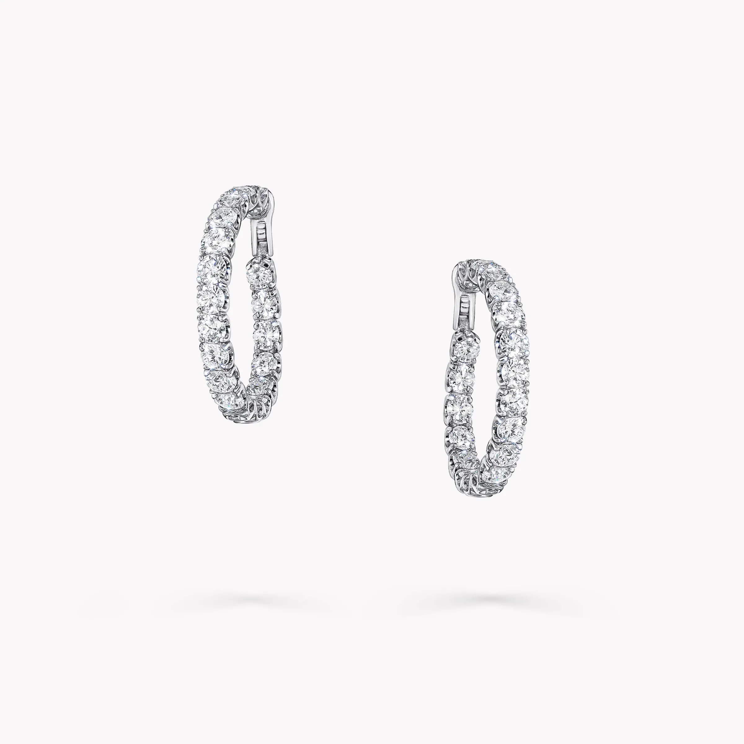 An elegant pair of Classic Graff round diamond hoop earrings with a total approximate weight of 8.00 carats.