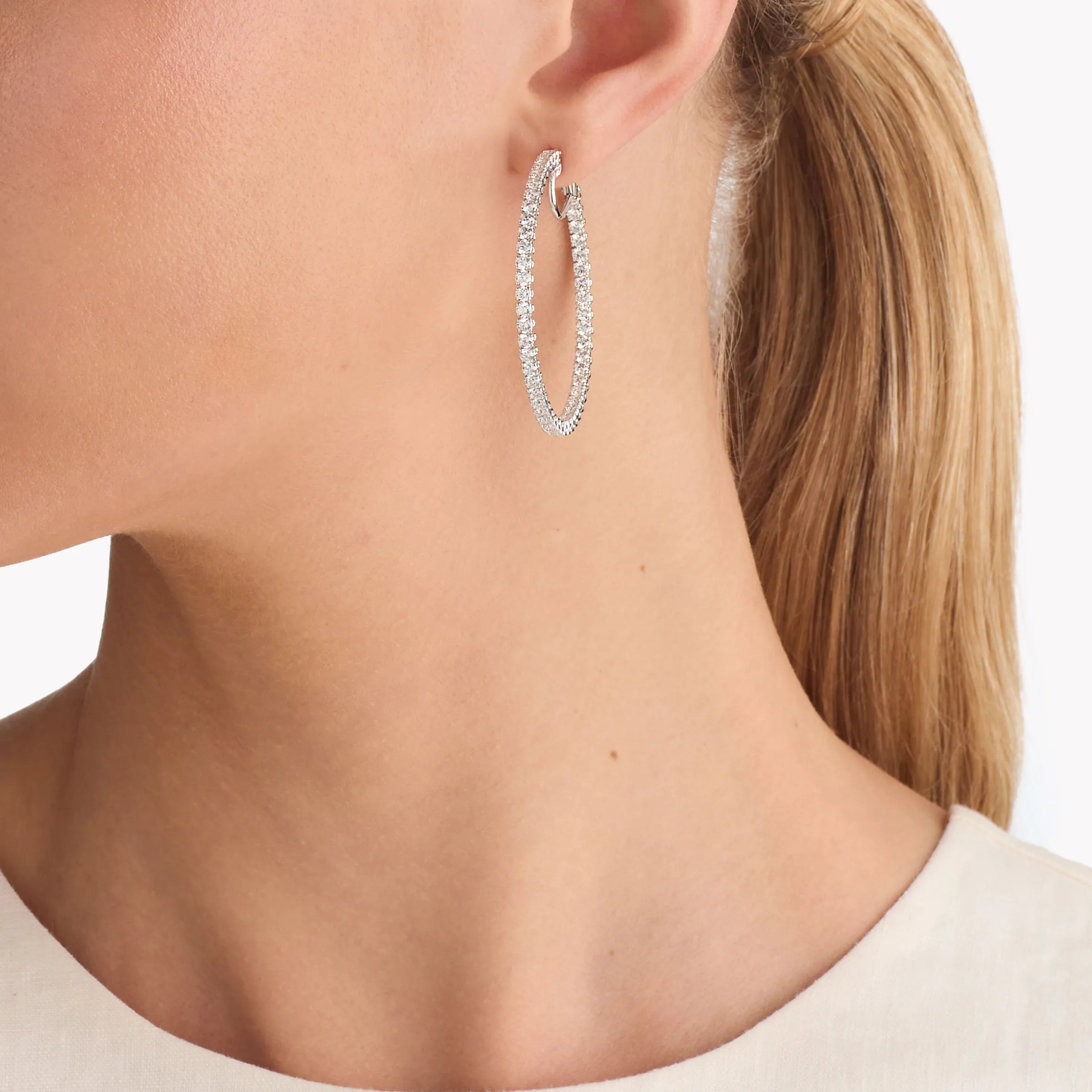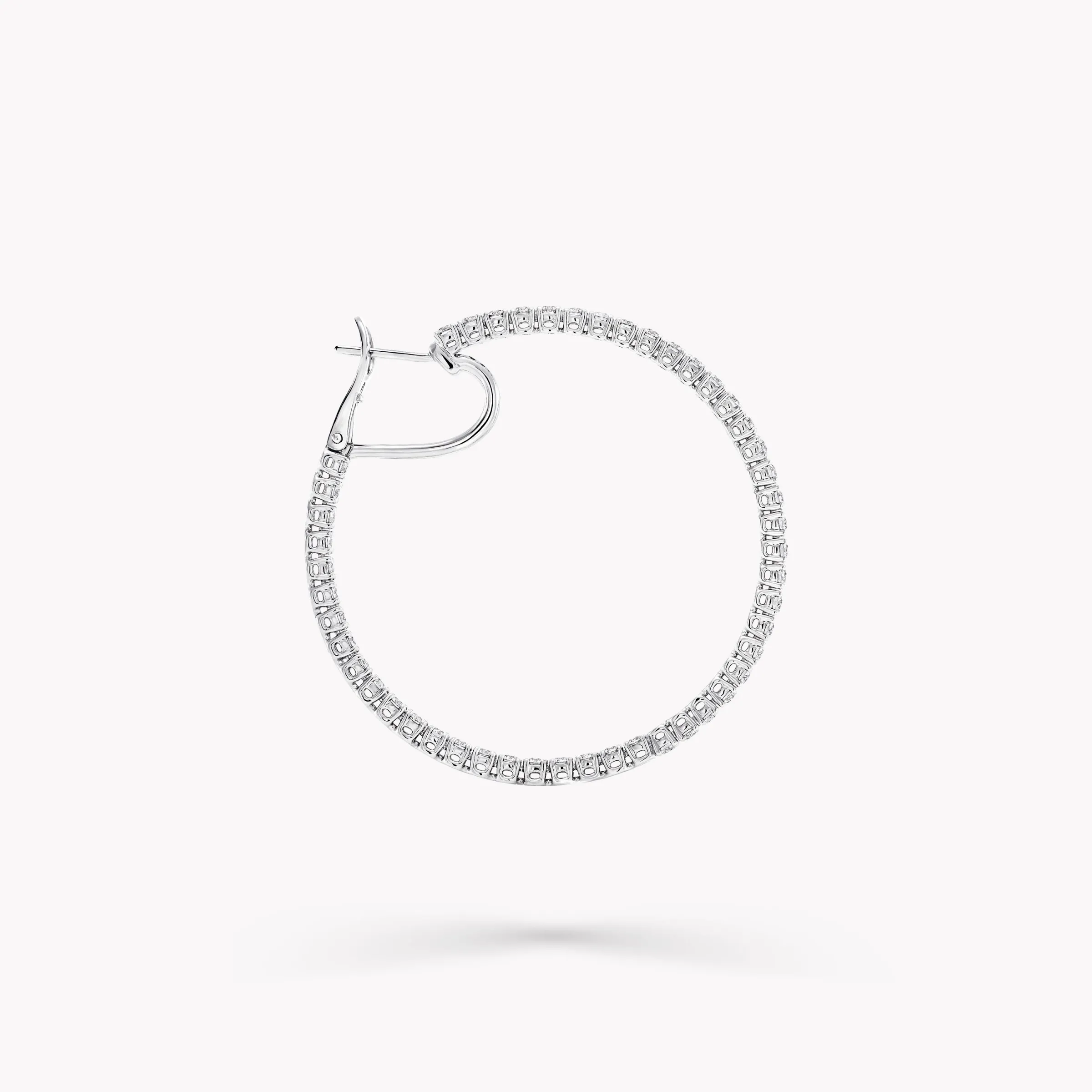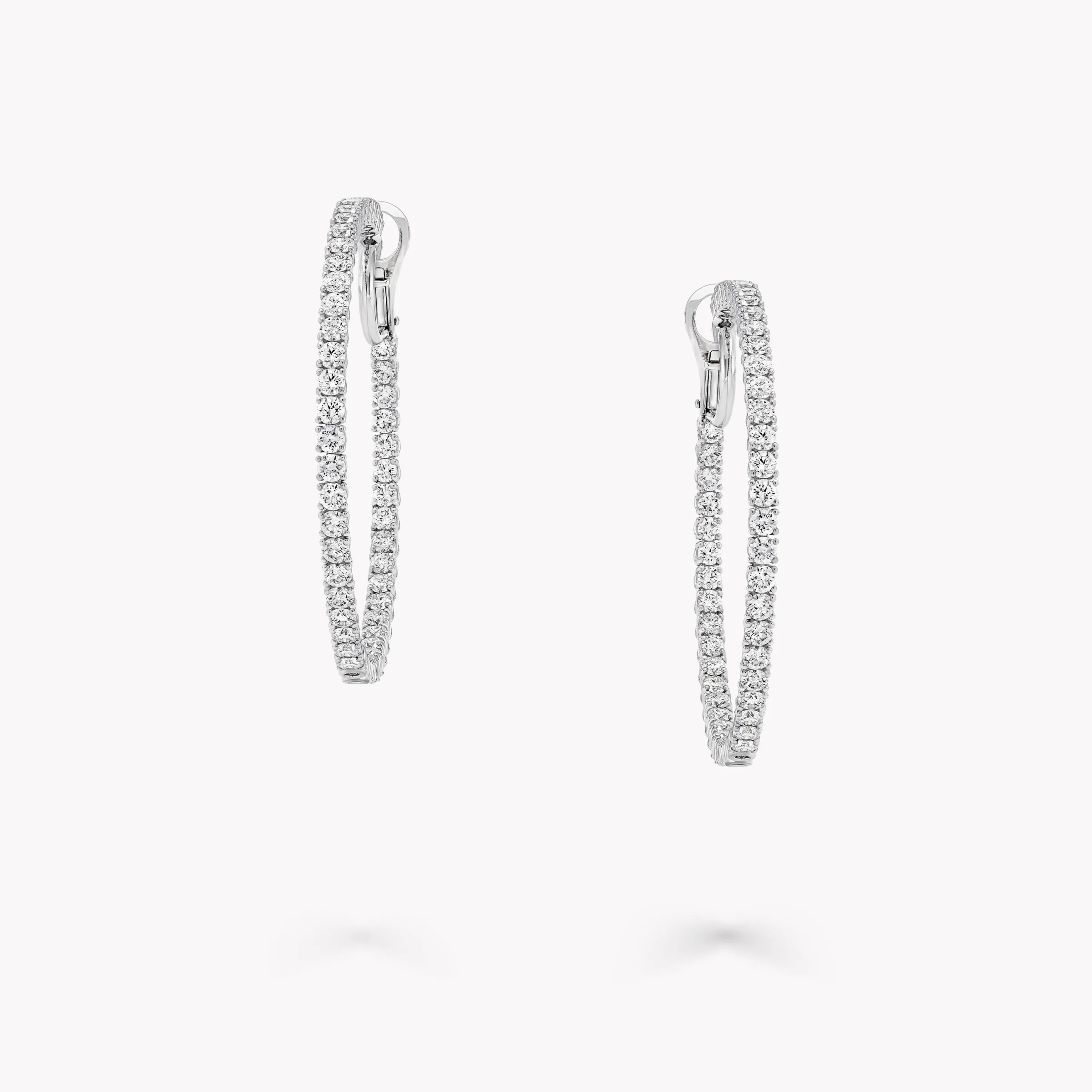An elegant pair of Classic Graff round diamond hoop earrings with a total approximate weight of 5.00 carats.