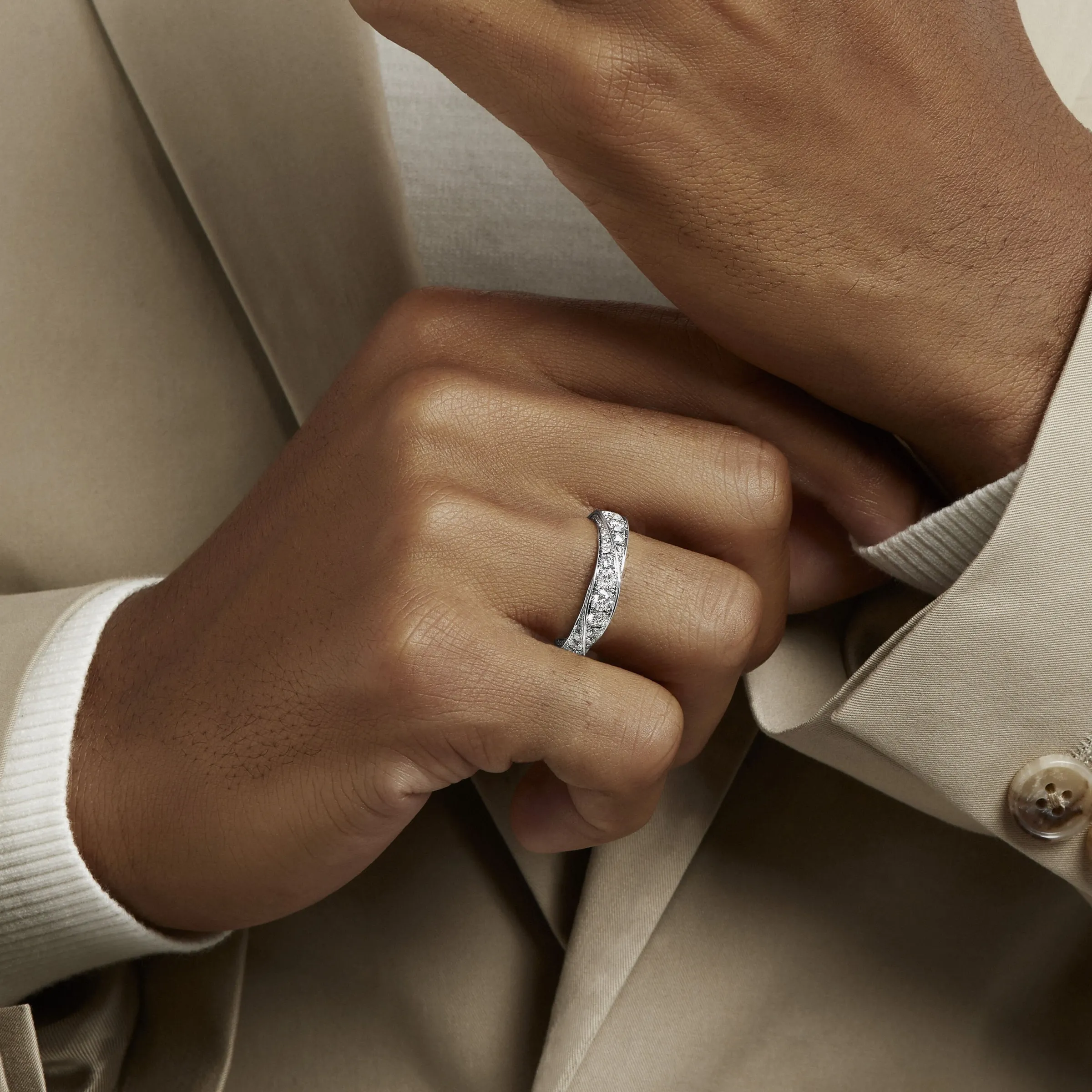 A Spiral white gold and pavé diamond 5mm band with a total weight of approximately 2.30 carats.