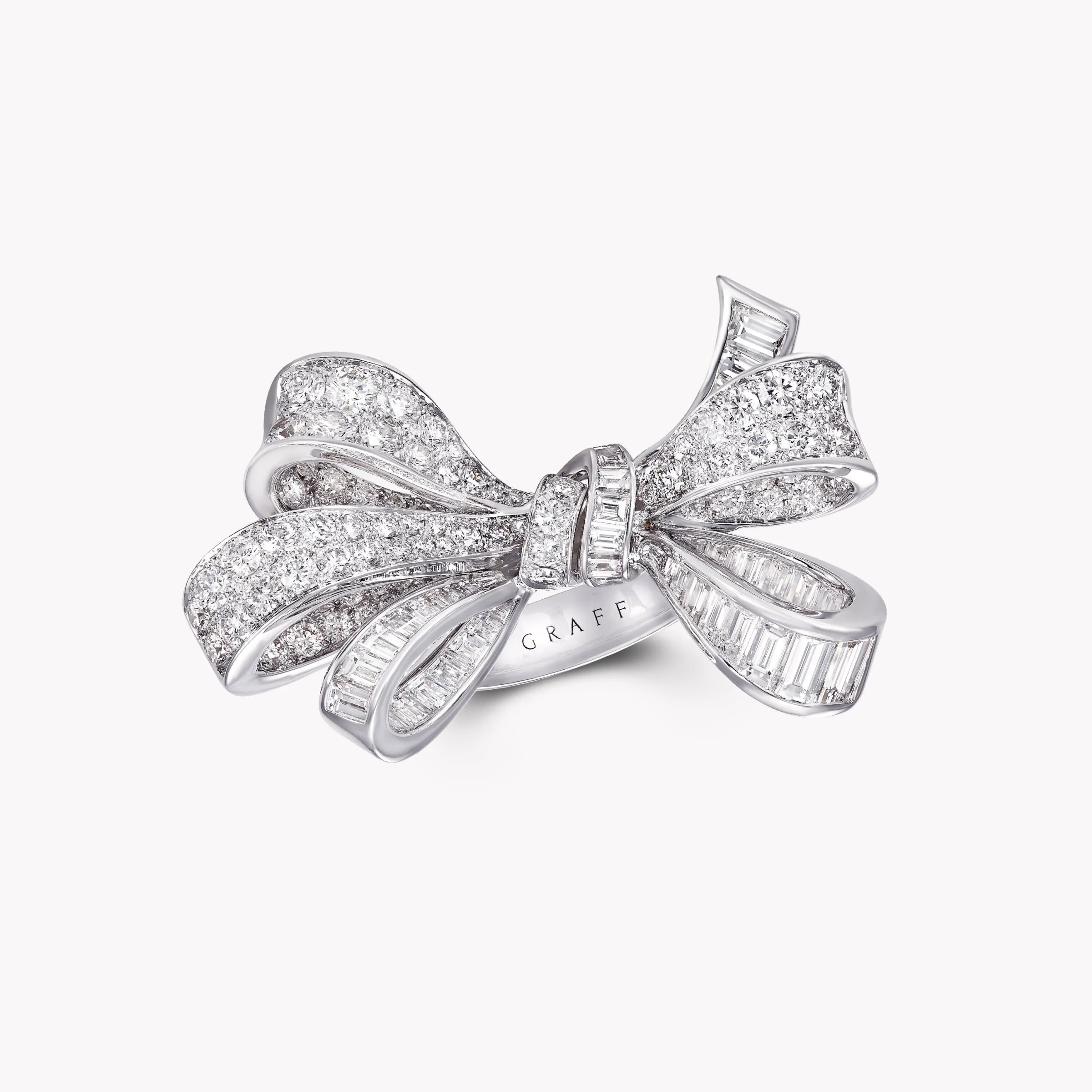 A charming Tilda’s Bow round and invisibly set baguette cut diamond ring with a total weight of approximately 3.60 carats.