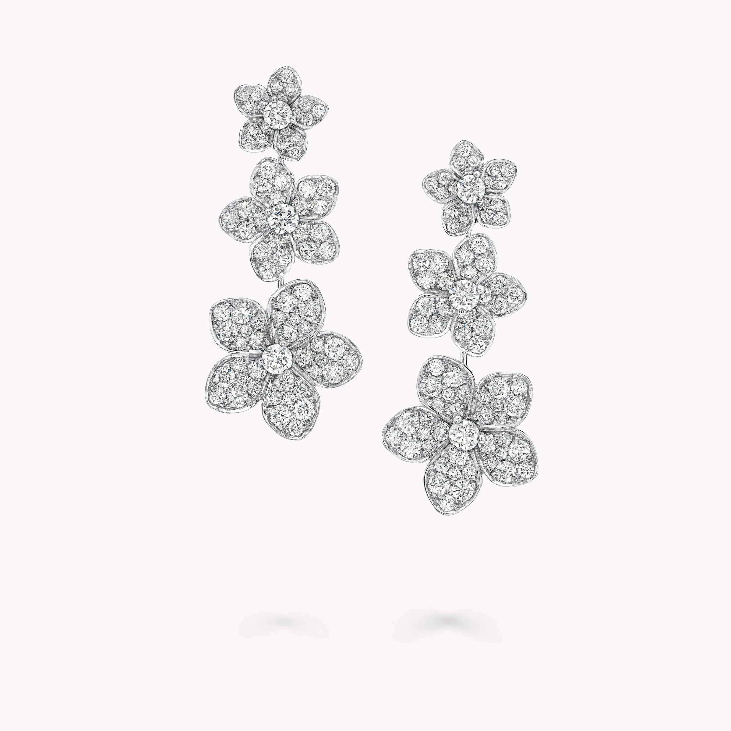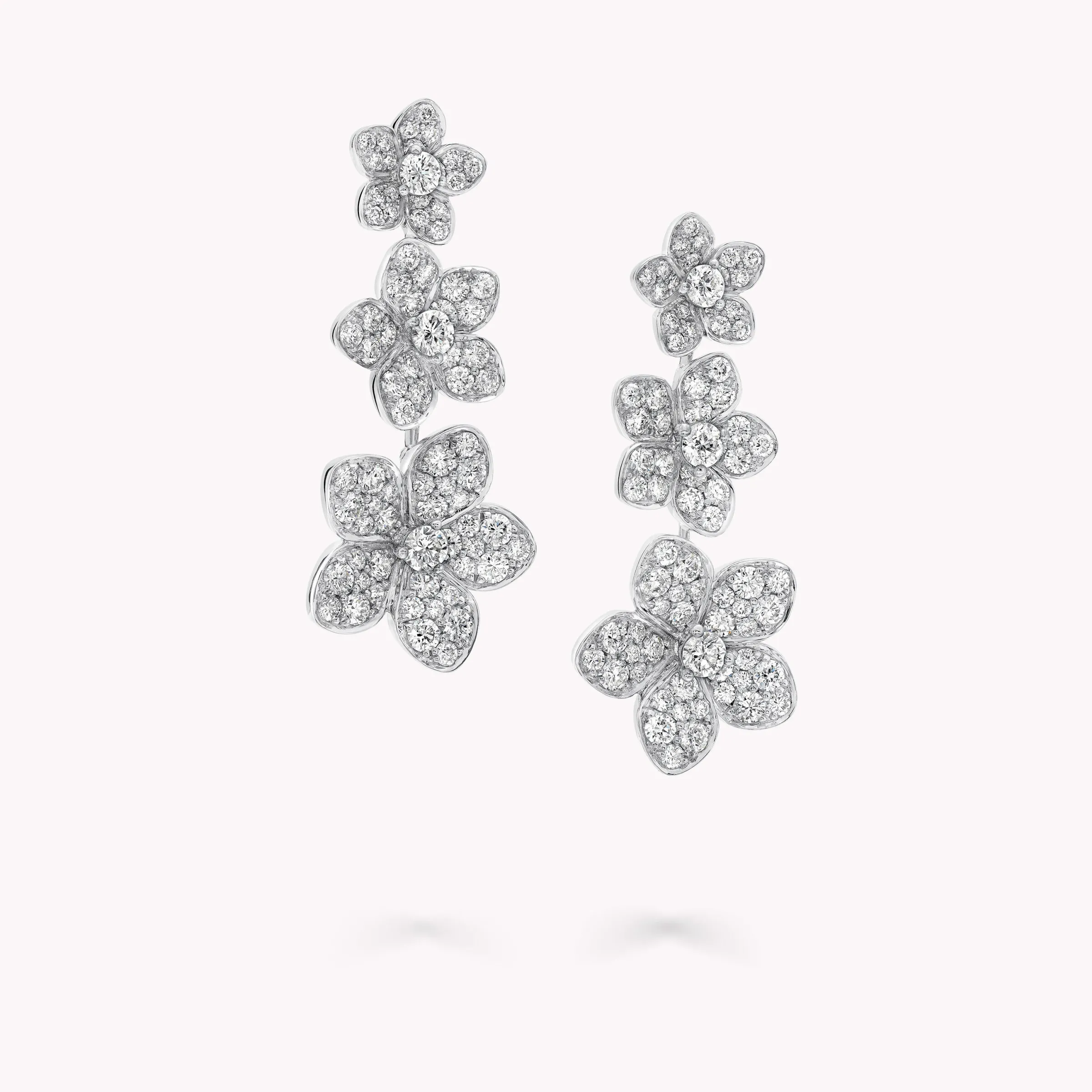 Enchanting Wild Flower diamond earrings with a total weight of approximately 3.31 carats.